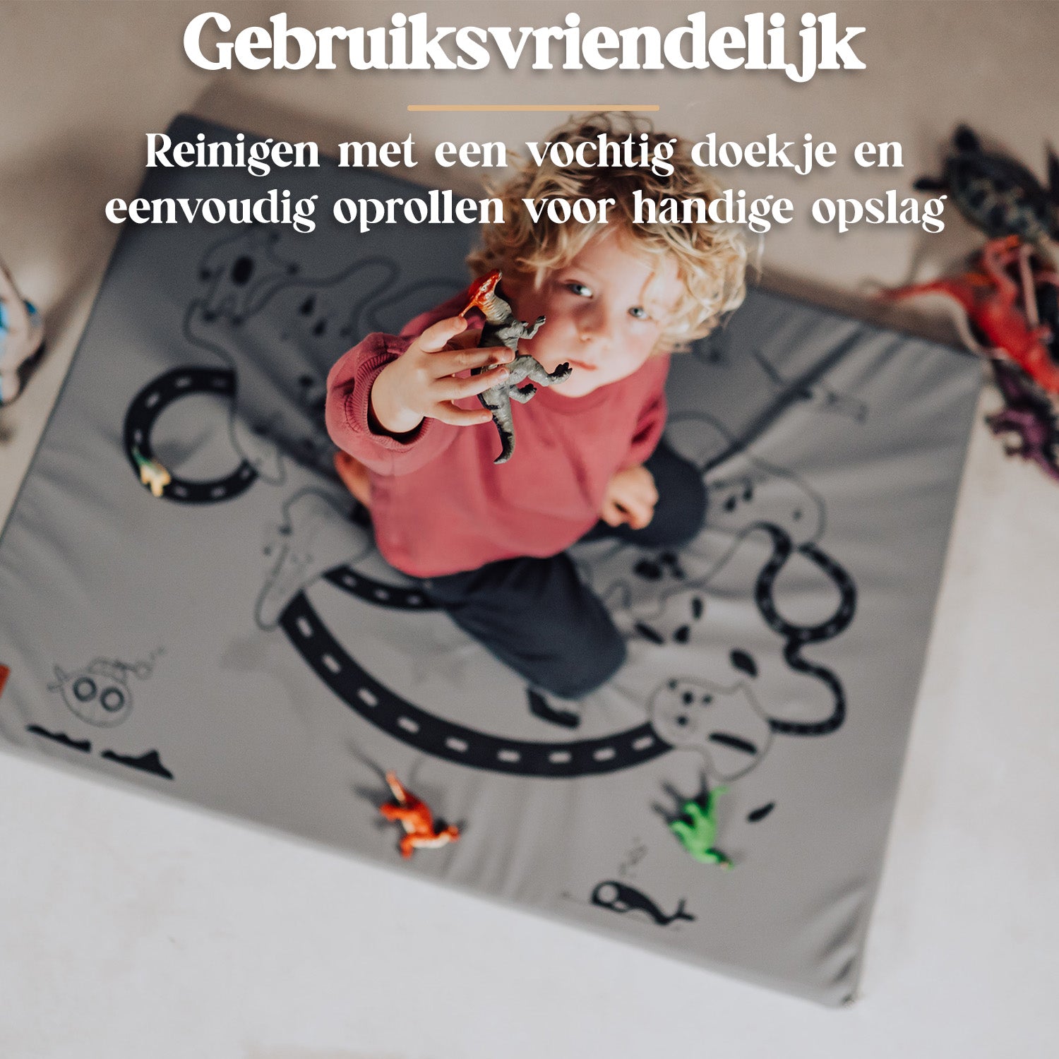 Veiligheid staat voorop! De speelmat is vrij van schadelijke stoffen en voldoet aan alle Europese veiligheidsnormen. Bovendien is het oppervlak gemakkelijk schoon te maken – ideaal voor dagelijks gebruik.